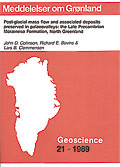 The Morrenesø Formation is of Late Proterozoic age and is preserved as the fills of a series of palaeovalleys. The formation is made up of conglomerates and sandstones of fluvial and aeolian origin and of a series of breccias which resulted almost entirely from gravitational nlass movement down the sides of the palaeovalleys. At the most extensive exposure, examples of local rock-fall, rock-slide and matrix-poor breccia flows are observed close to the valley side. Their movement was probably favoured by freeze-thaw mechanisms. More widespread diamictites overlie valley-floor sands and were deposited under water-saturated conditions as a series of mass flows apparently from the sides of the palaeovalleys. The diamictites contain far-travelled clasts, some of which show striated surfaces suggesting a phase of glacial transport prior to final emplacement. Only at one locality does diamictite directly overlie the basal unconformity and suggest possible in situ till. The diamictite sheets are overlain by a widespread but thin dolomite unit which shows spectacular stromatolitic donles. At other localities in the area, valley fills show evidence of floating lake ice with dropstone pebbles occurring in thin bedded sandstones and mudstones.
